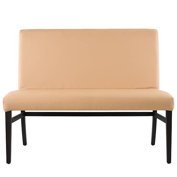 Banchetă modernă în nuanță camel cu structură metalică neagră.