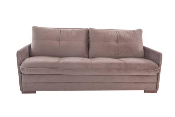 Canapea confortabilă în nuanță taupe cu perne voluminoase și design clasic.